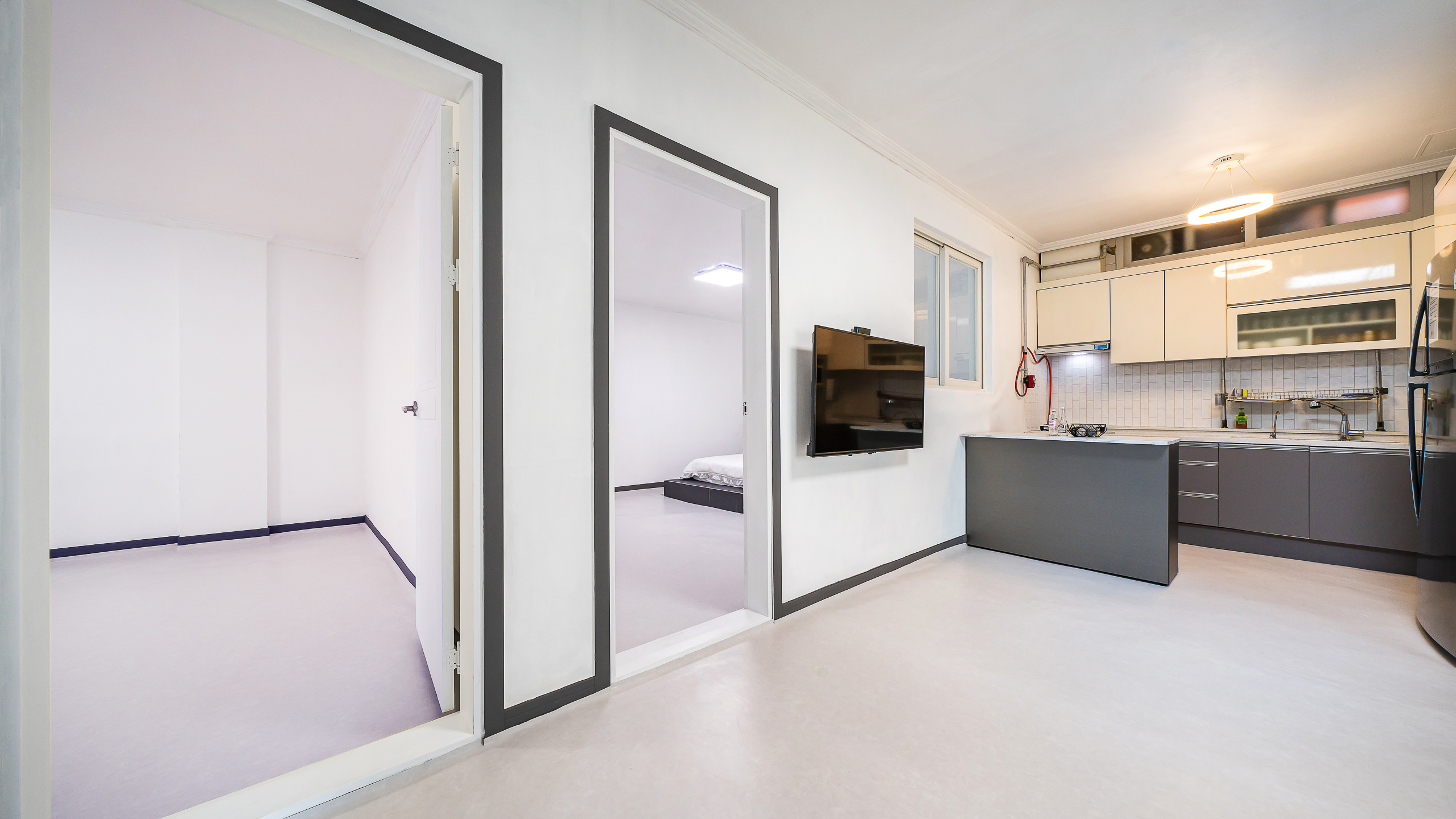 °¢°¢ µÎ °³ÀÇ ´õºí»çÀÌÁî º£µå°¡ ¼³Ä¡µÈ(ÃÑ 4°³)³ÐÀº µÎ °³ÀÇ ¹æ°ú ³ÐÀº ÁÖ¹æ°â °Å½Ç,